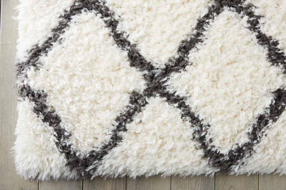 This exceptionally plush 2-inch-deep shag rug from the Nourison Luxe Shag Collection has the look and feel of luxuriously soft sheepskin, and makes a perfect addition to any casual room setting. Luxurious texture and Moroccan lattice pattern on soft ivory color for a warm, soothing accent.