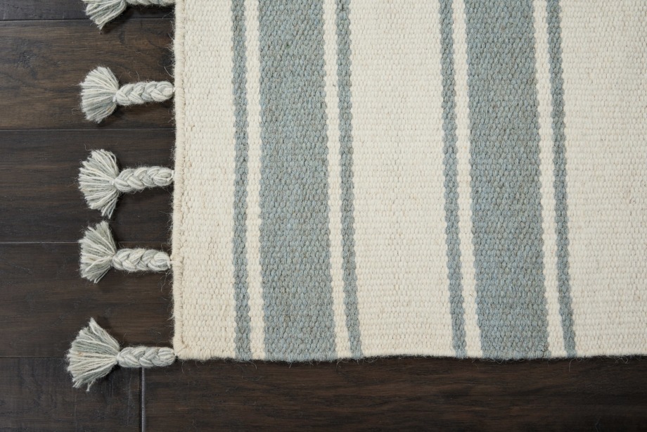 The Dhurrie design is native to India and loved for its chic simplicity, flat weave and natural gradations of tone and pattern. The Rio Vista Collection of Dhurrie area rugs from Nourison is hand woven from a terrifically-textured and longwearing wool with a cotton polyester blend and features an exciting array of neutral and bright color palettes to add an element of casual cool to any room. Fantastically fringed and reversible for maximum impact and versatility.